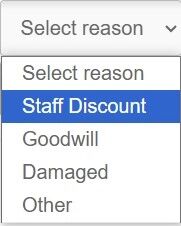 3. If adding a custom discount, a reason must be entered. You can choose from Staff Discount, Goodwill, Damaged or Other.