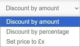 5. The next step is to choose the method of discount. You can discount be a specific amount, by a percentage or set to a specific price.