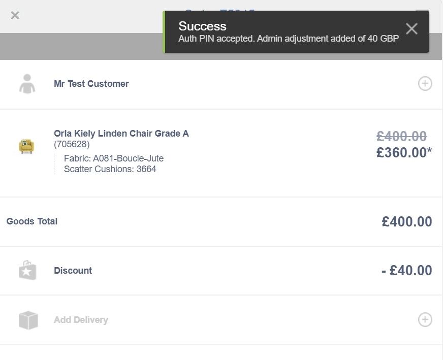 8. If the Auth PIN was correct, the discount will be applied and you will receive a "Success" message.