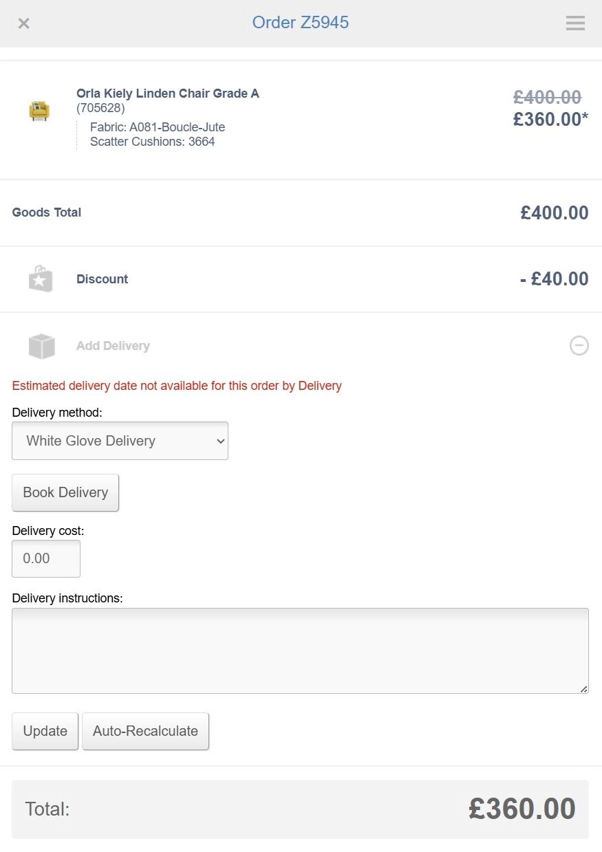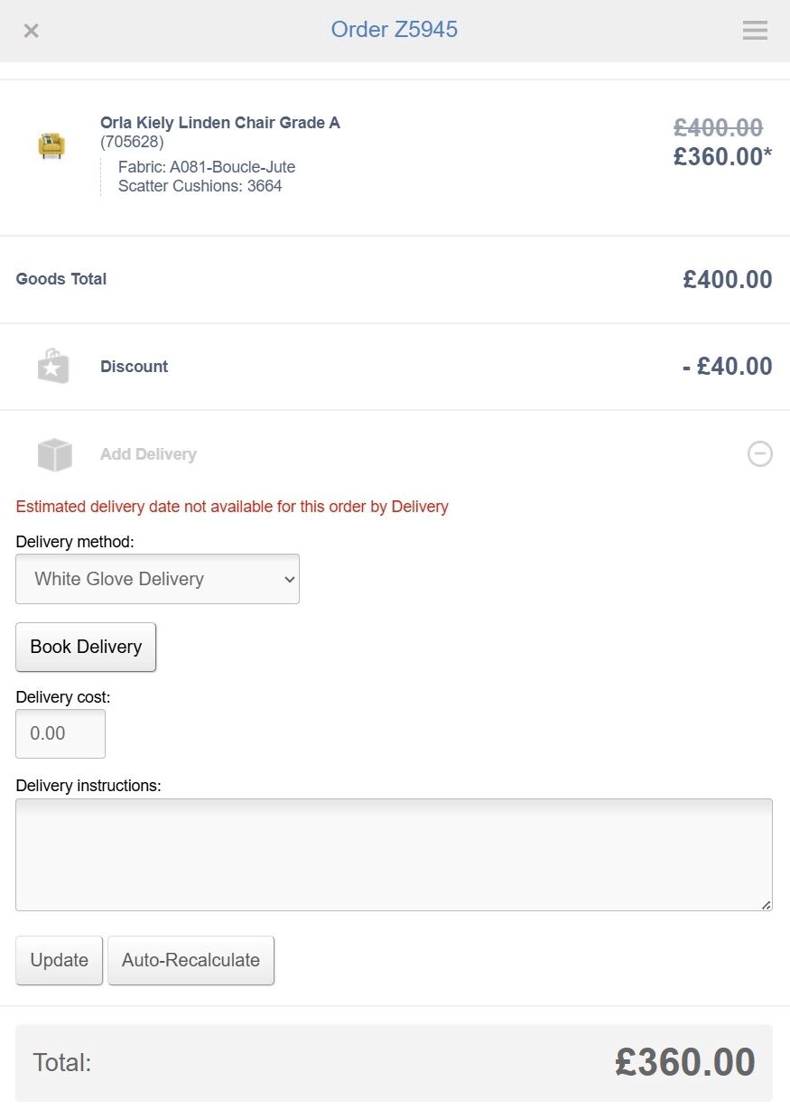 3. If the customer is not walking away with the product(s), and the product does not need to be ordered in, you can book the delivery.