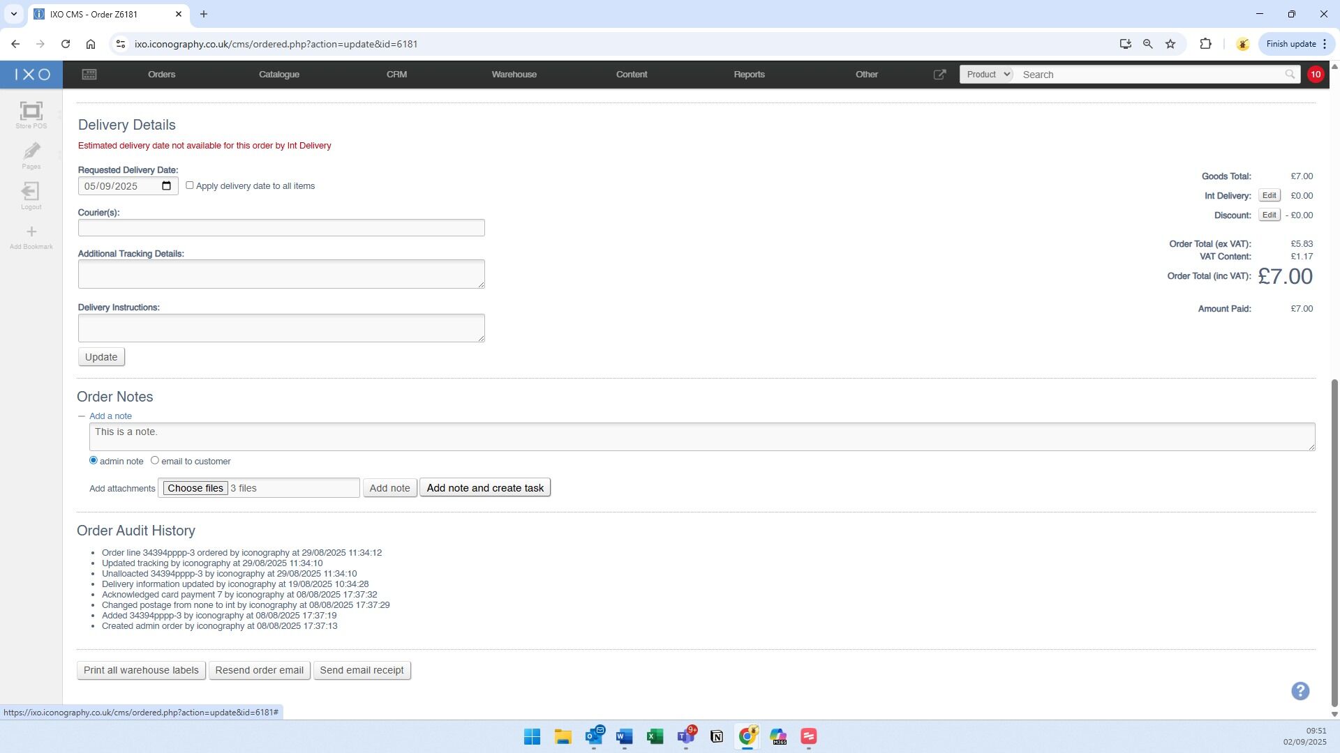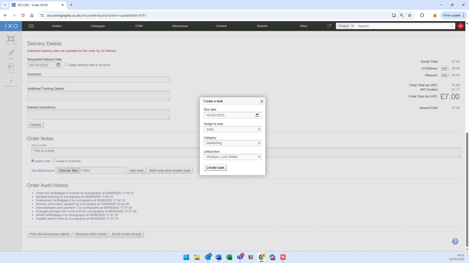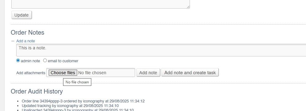 Notes may be added to Tasks, Customers, Sales Orders, Purchase Orders and Stock Transfers; the process is the same for each one.