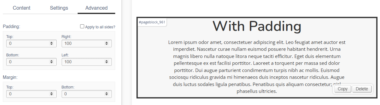 Adding padding will insert space within the current block; this will adjust the position of content within the block.