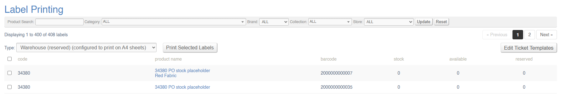 Labels that include barcodes will take those from the Variant; where a label is for a Unique Stock Record, it will display the barcode for that Unique Stock Record instead