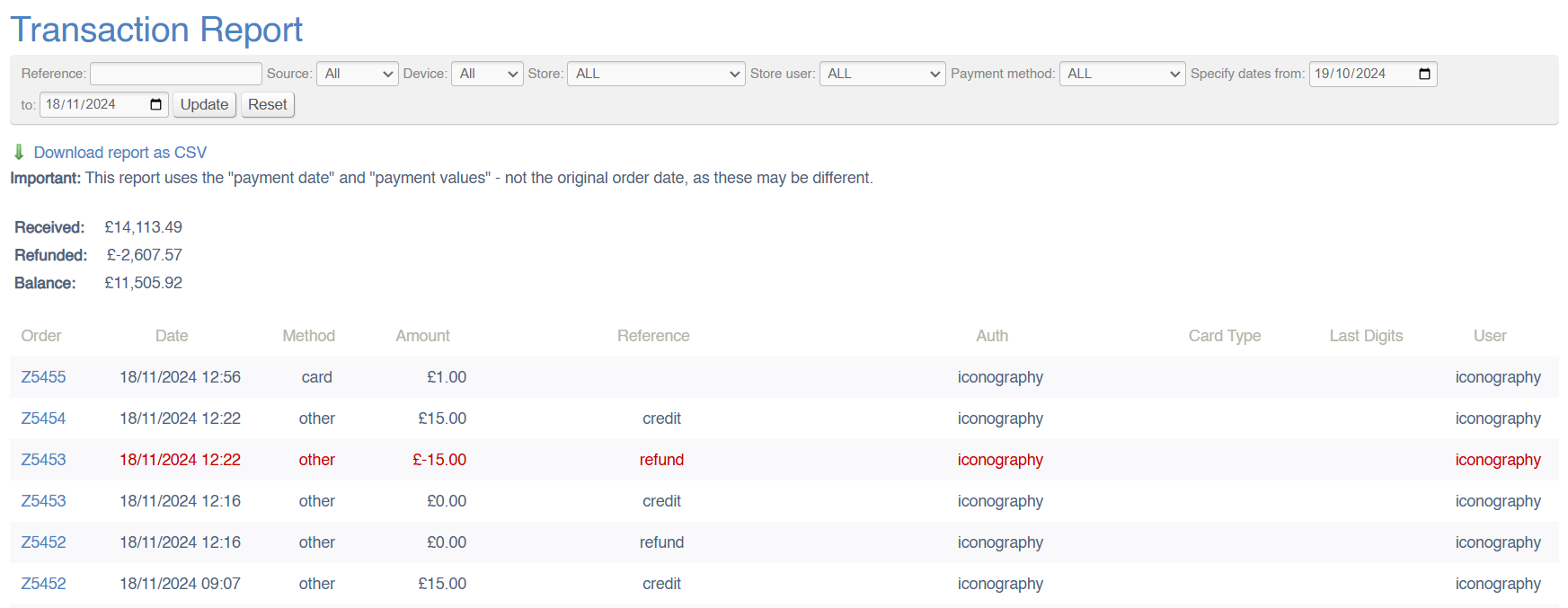 'Payment Date' for pending payment (e.g. finance orders) will be taken as the date that the payment was completed