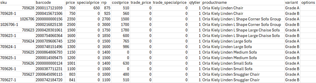 Use this file to adjust prices on your selected Products and Unique Stock Records.