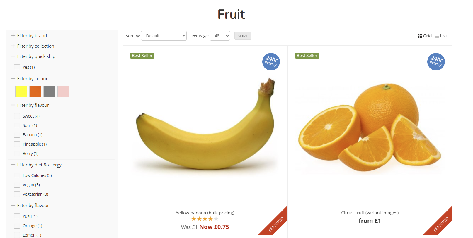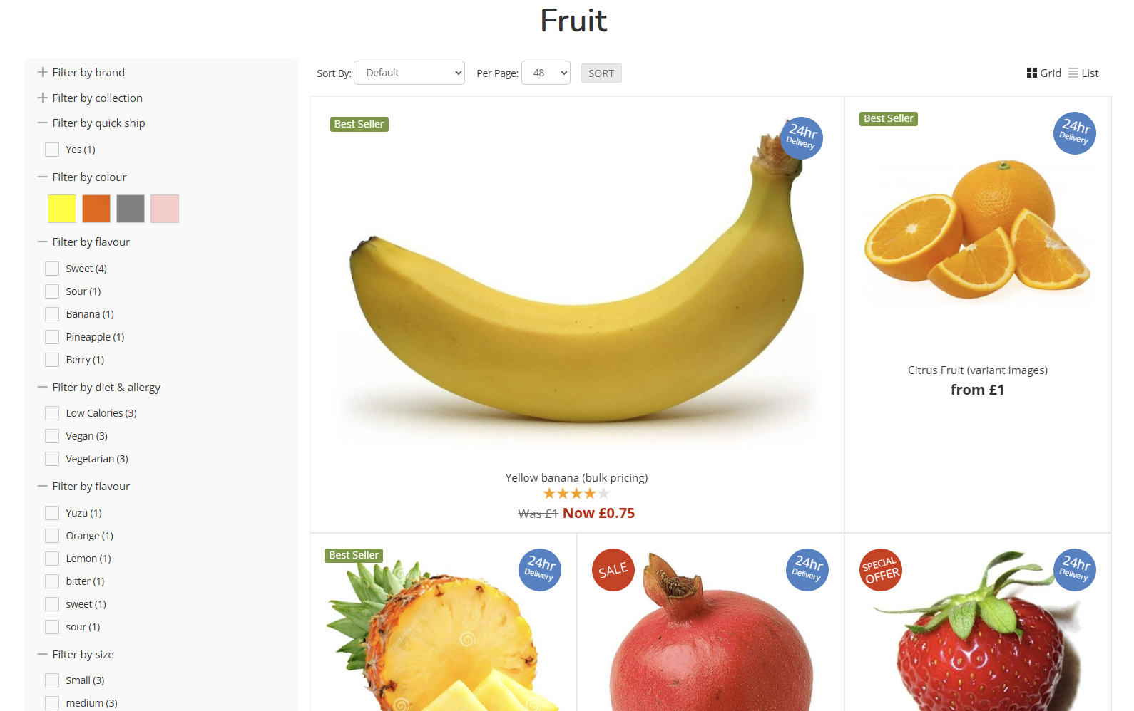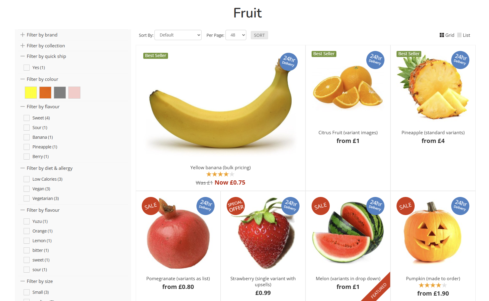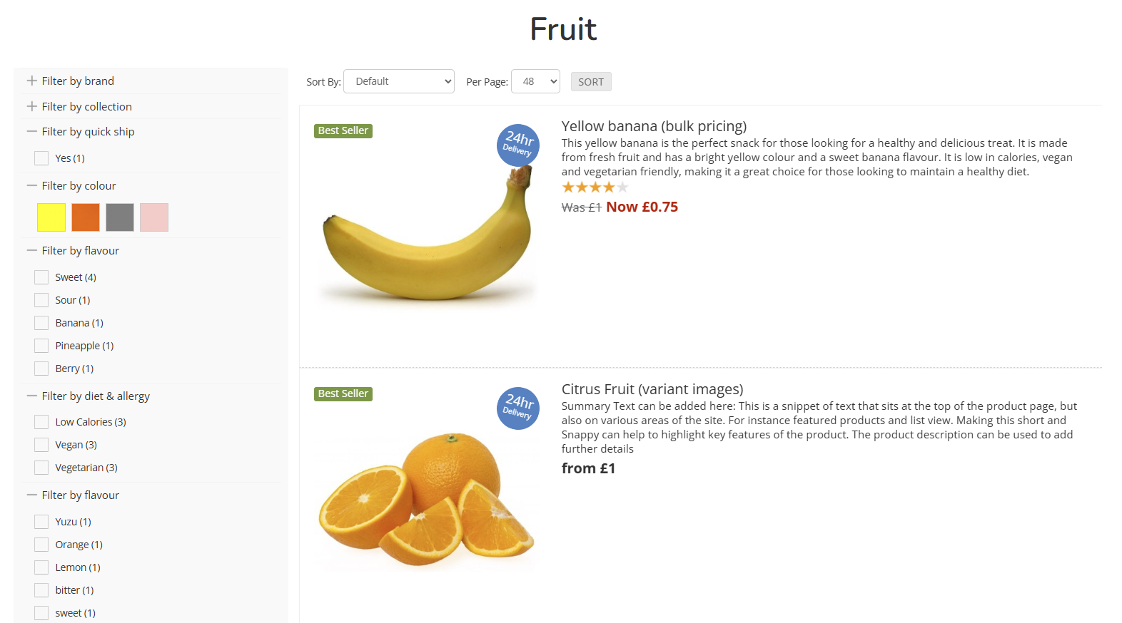 This is ideal for Products for simple options, e.g. sizing, or where you expect a Customer to purchase multiple items from the same Product Listing Page