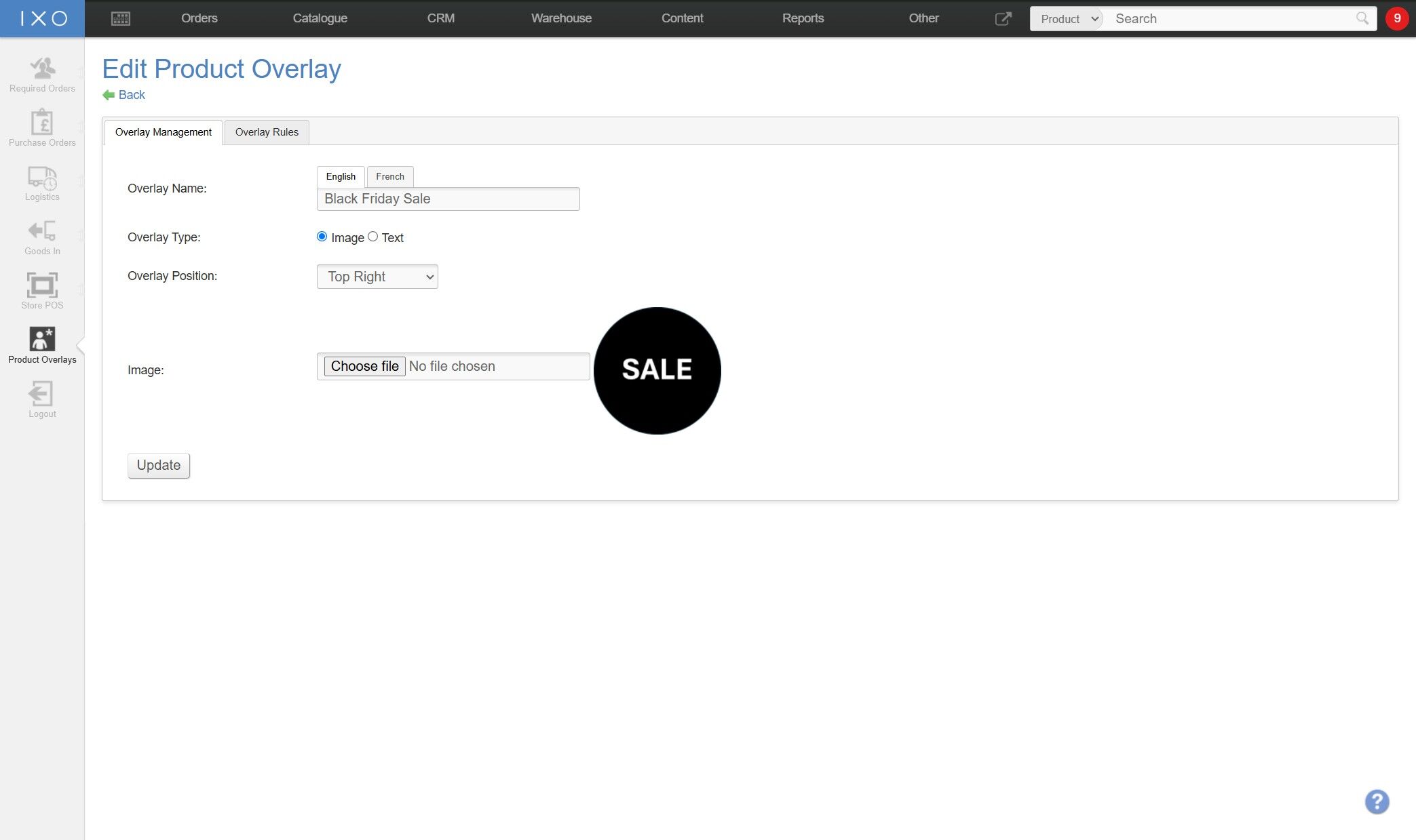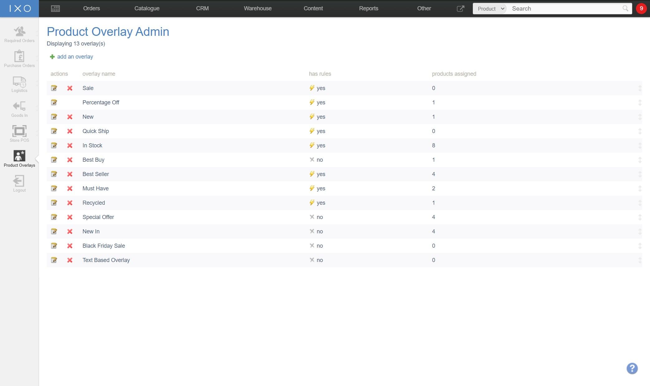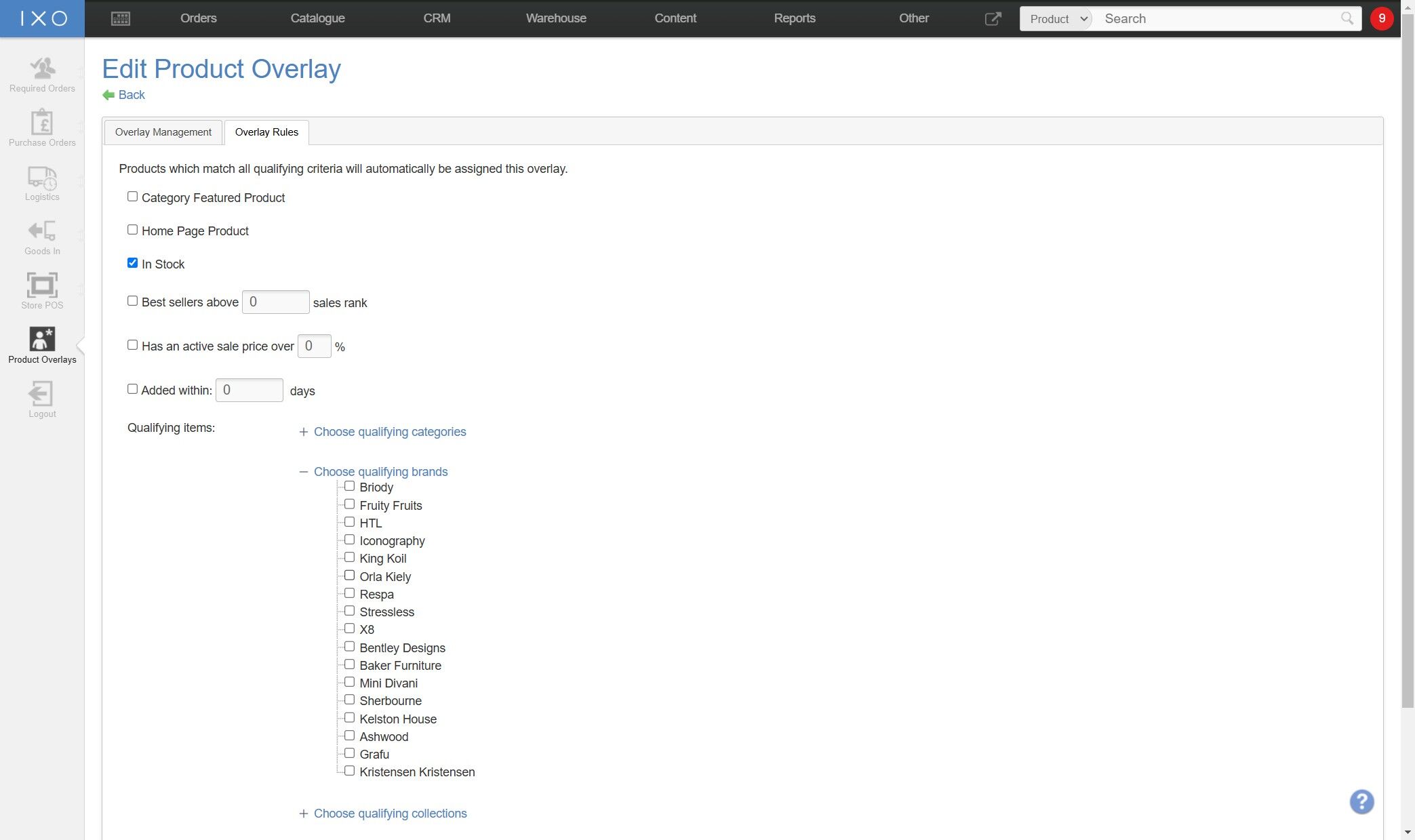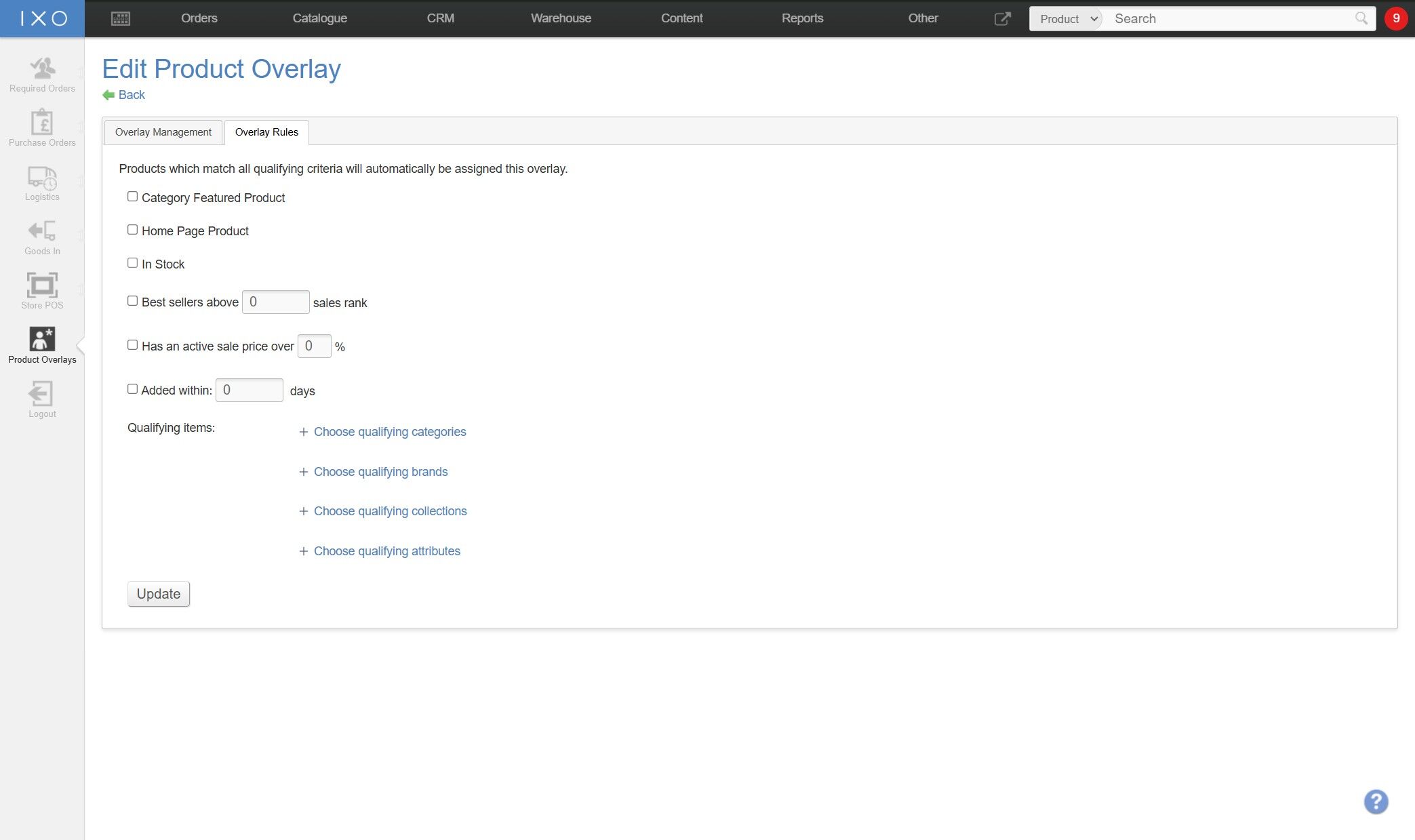 Overlays can be assigned in bulk to products using the Overlay Rules tab as follows:
