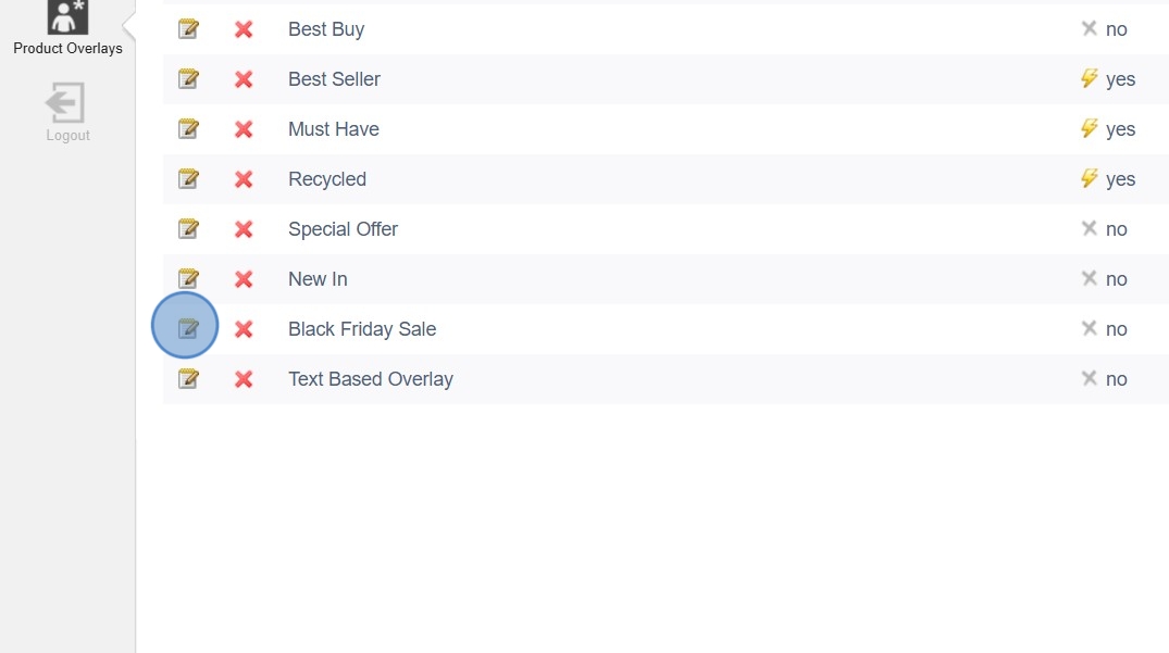 3. Add a new Overlay, or click the edit icon to go in to an existing one. In this case we are choosing "Black Friday Sale".