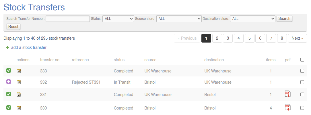 Click to create a new Stock Transfer; this could be an internal stock movement, or between two Stores.