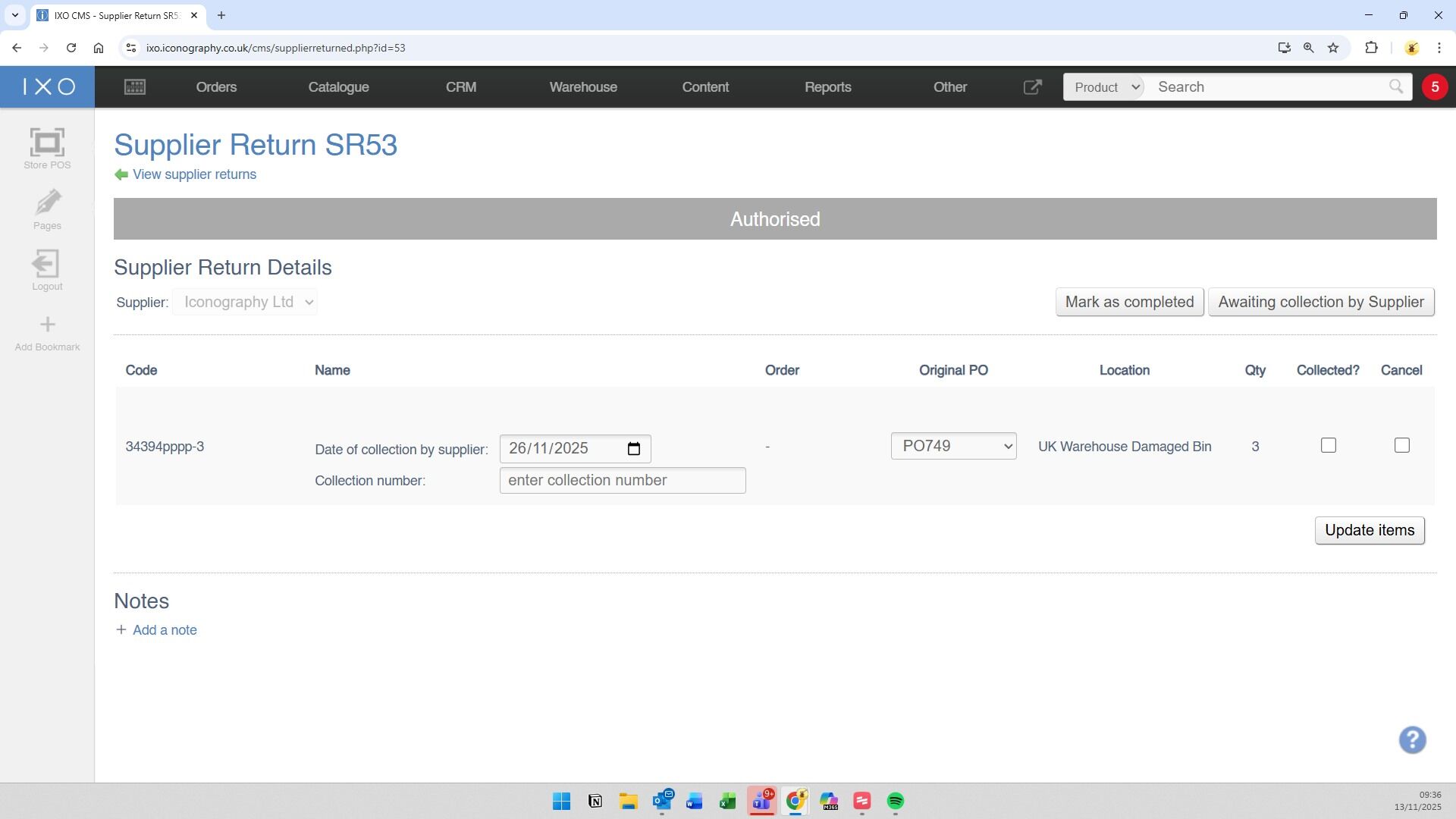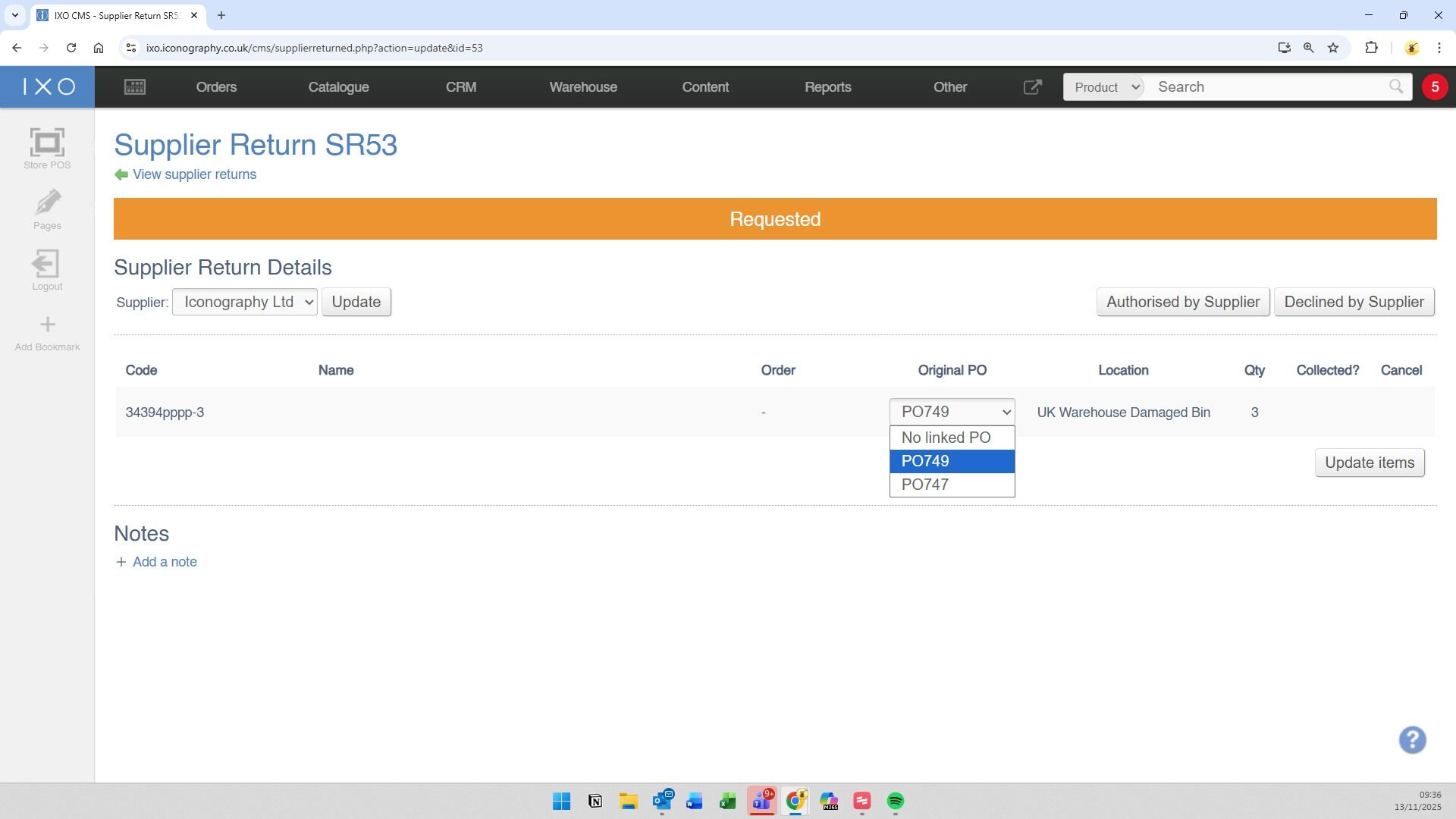 8. The next stage will rely on your Supplier, who will either Authorise or Decline the Supplier Return.