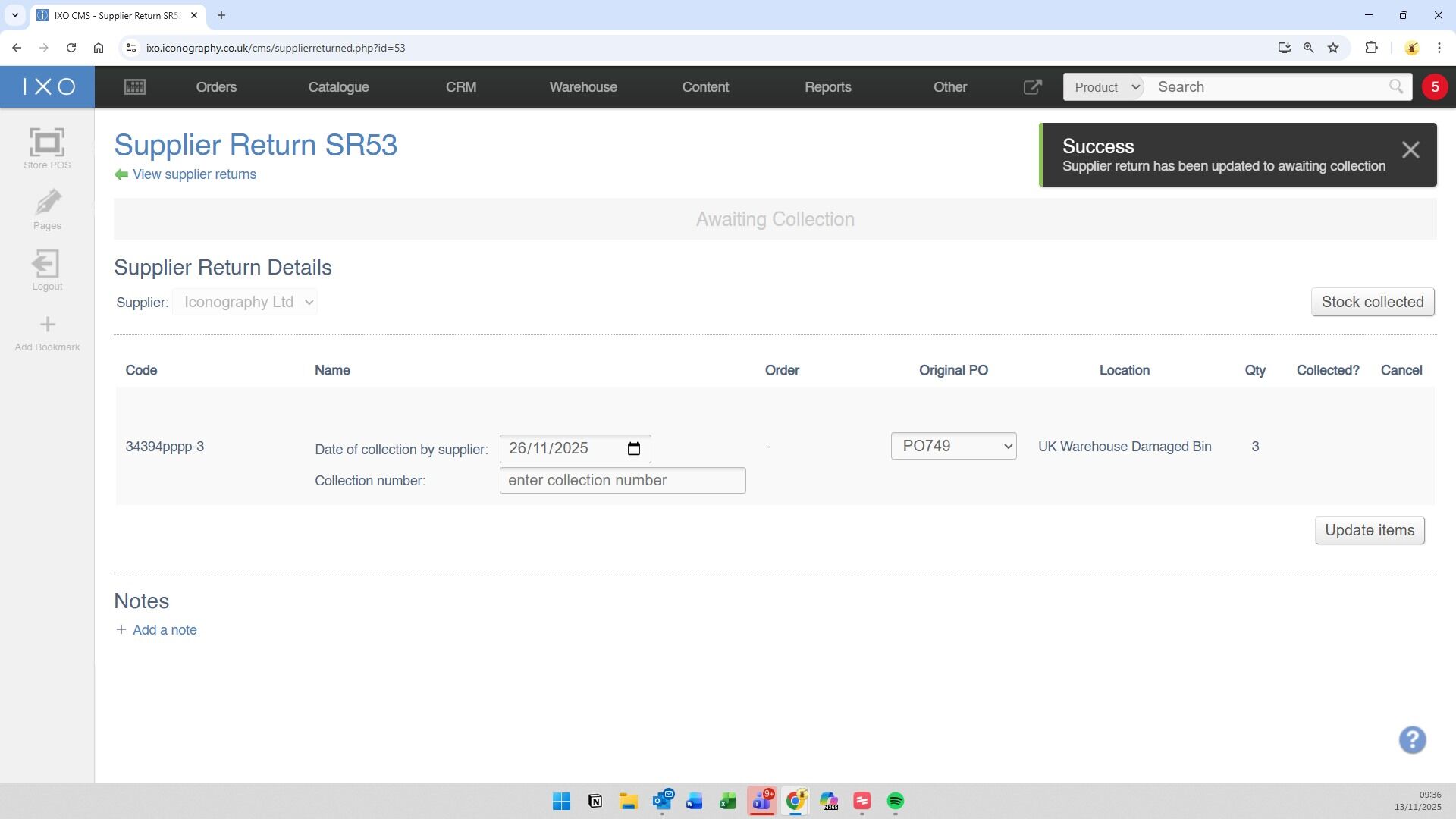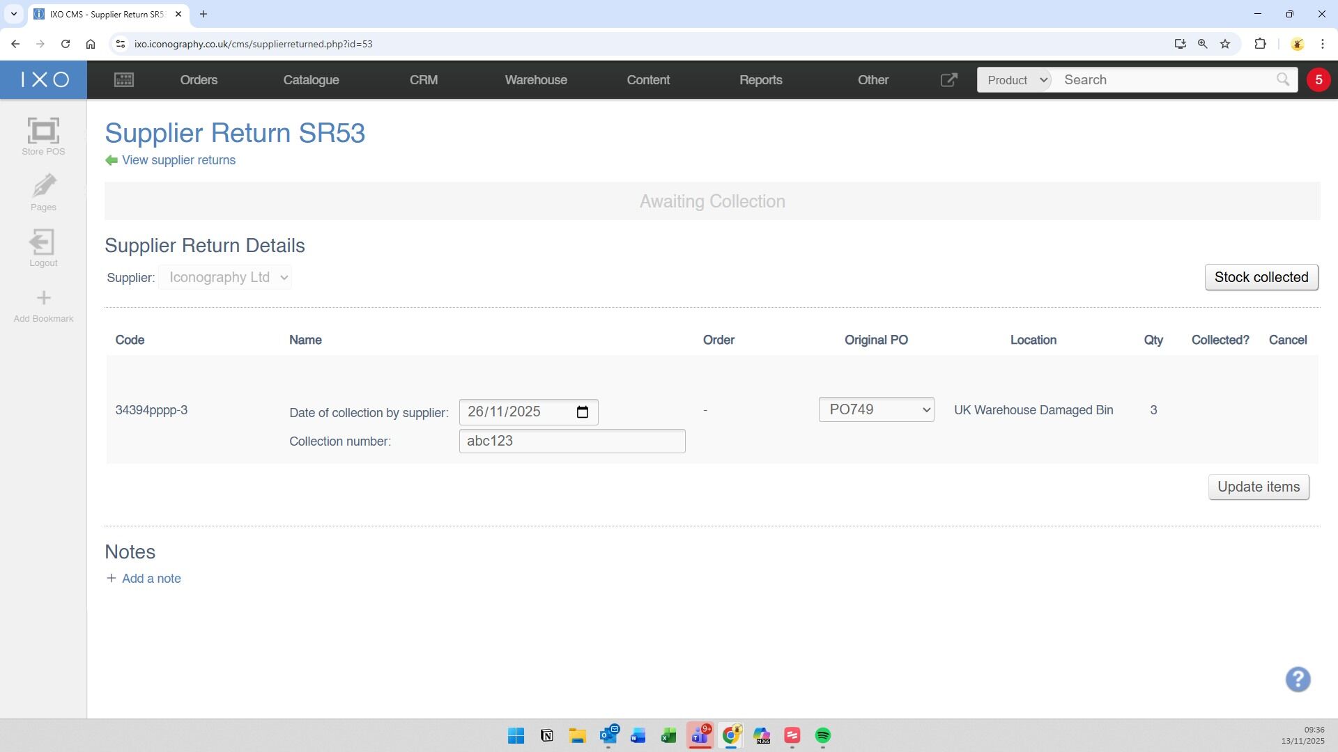 13. Click "Awaiting collection by Supplier"