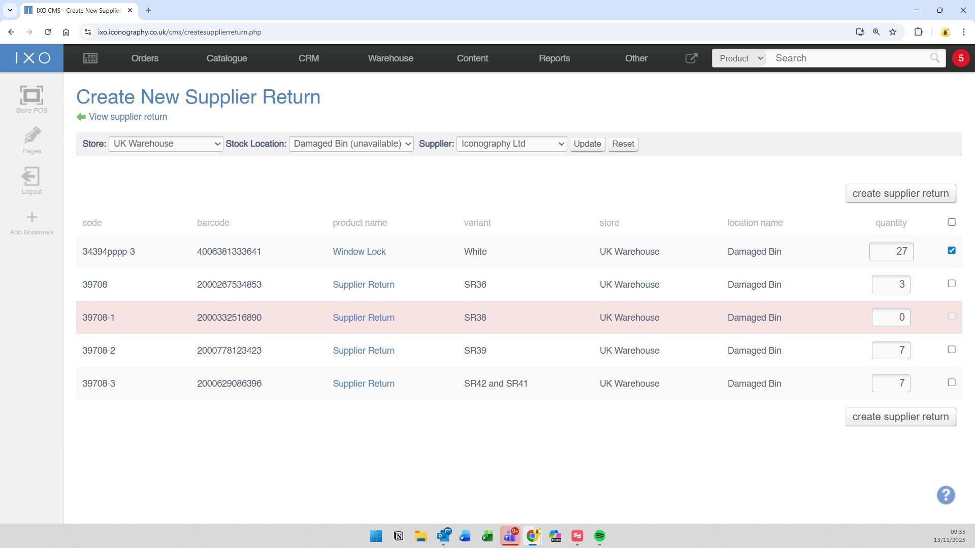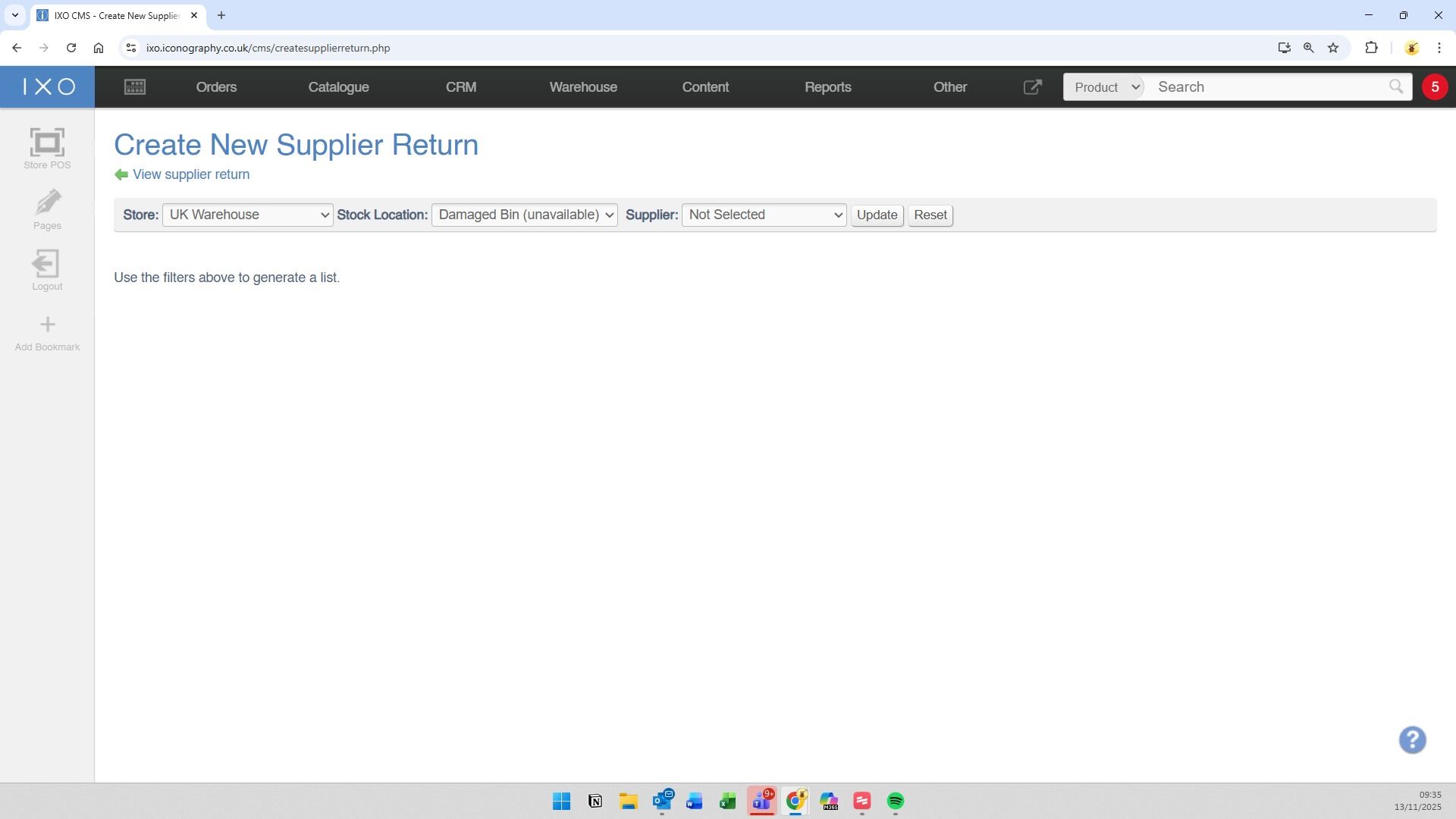 This guide shows how to create and manage a Supplier Return via the Supplier Return section of the CMS; Supplier Returns may also be created via the Returns screen, or via the Sales Order Detail screen